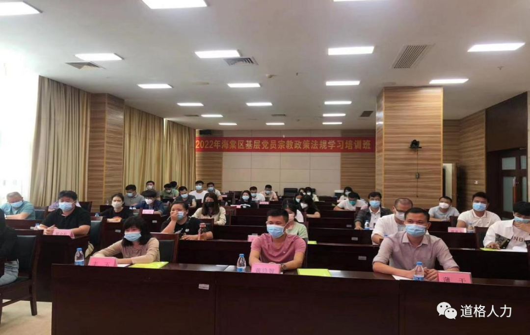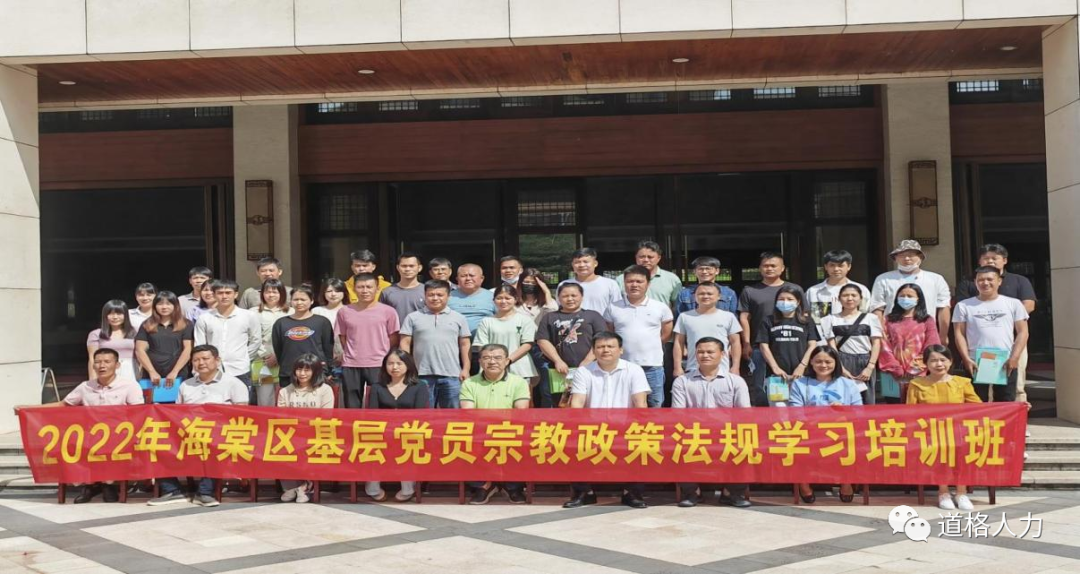 由中共三亞市海棠區(qū)委統(tǒng)一戰(zhàn)線(xiàn)工作部、中共三亞市海棠區(qū)委組織部聯(lián)合舉辦,海南道格人力資源開(kāi)發(fā)服務(wù)有限公司承辦的2022年海棠區(qū)基層黨員宗教政策法規(guī)學(xué)習(xí)培訓(xùn)班,于2022年10月25日開(kāi)班,此次培訓(xùn)班為期四天,參加培訓(xùn)人數(shù)為44人。
