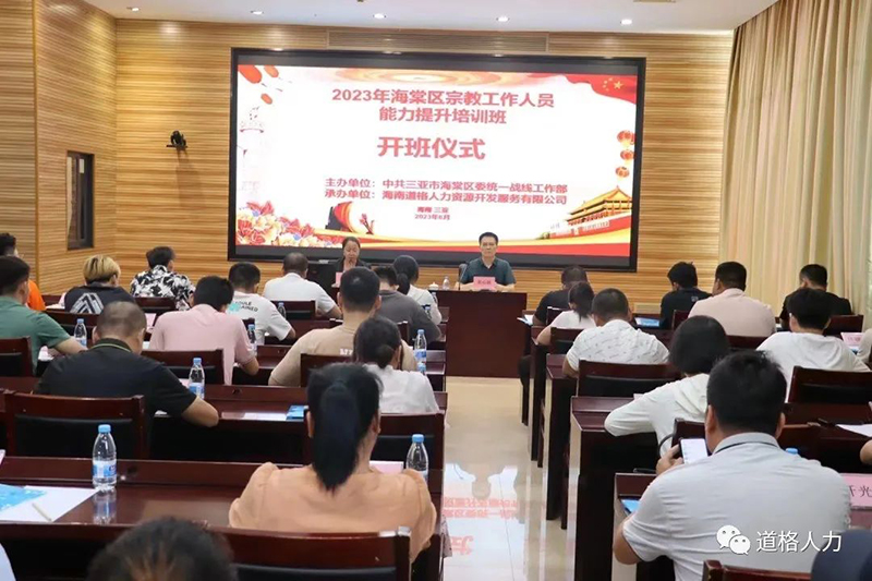 2023年6月26-28日,中共三亞市海棠區(qū)委統(tǒng)一戰(zhàn)線工作部主辦,海南道格人力資源開發(fā)服務(wù)有限公司承辦的2023年海棠區(qū)宗教工作人員能力提升培訓(xùn)班正式開班。