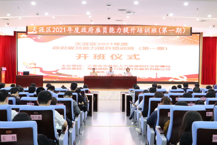 由三亞市天涯區(qū)人力資源和社會保障局主辦,海南道格人力資源開發(fā)服務有限公司承辦的天涯區(qū)2021年度政府雇員能力提升培訓班(第一期),于2021年11月29日-12月1日在康特王府酒店舉辦,三亞市天涯區(qū)人力資源和社會保障局局長唐建偉同志做開班動員講話,參加培訓的是天涯區(qū)的政府雇員,共計234人。