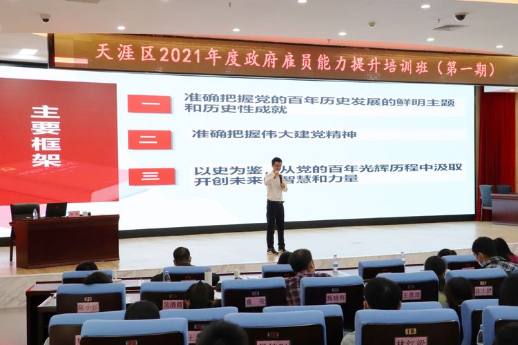 本次培訓班,主要采用課堂理論教學的學習方式,學習了解讀海南自由貿(mào)易港法》、《弘揚憲法精神,維護憲法權威》、《解讀黨的十九屆六中全會精神》、《如何做好換屆中的保密工作》、《職場職業(yè)心理疏導》、《初心使命一百年-跟著習近平總書記學黨史》等課程。