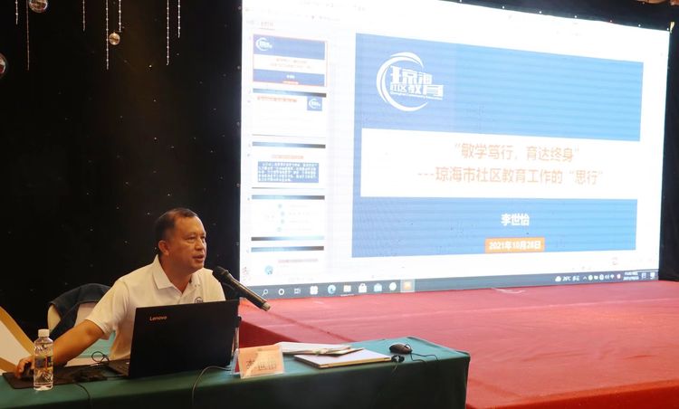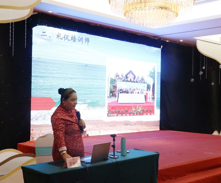 海南熱帶海洋學(xué)院繼續(xù)教育學(xué)院黨委書記黃麗華同志和三亞市海棠區(qū)教育局黨委委員黃運清同志做開班動員講話